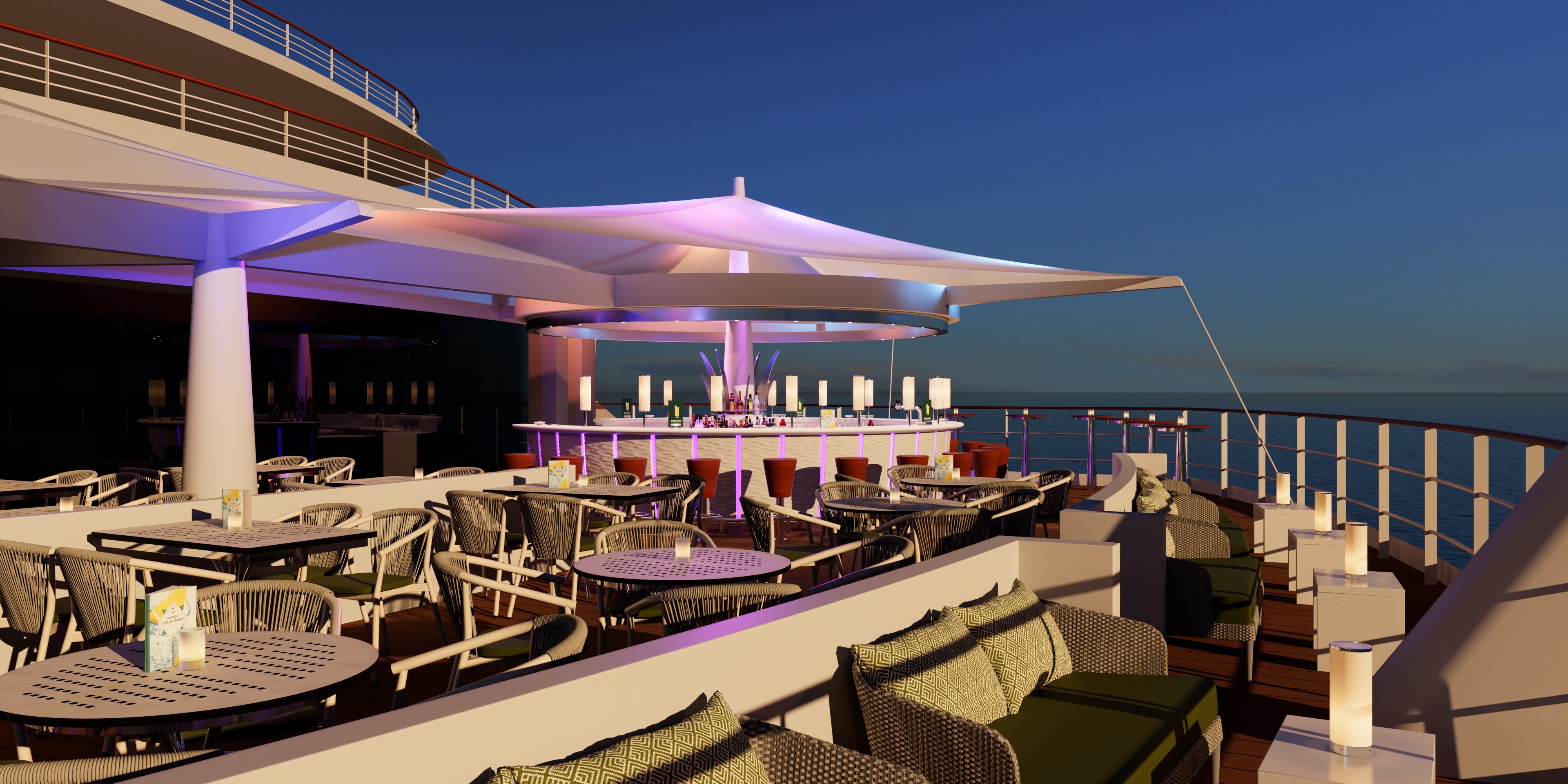 - Neue Show-Erlebnisse: Mit viel Liebe zum Detail, frischen Farben, neuem Mobiliar und besonderen kulinarischen Genüssen wird das Theatrium noch gemütlicher und einladender gestaltet. Die Raumaufteilung wird optimiert, sodass die verschiedenen Bereiche harmonischer miteinander verbunden sind. Modernste Technik für Sound, Licht und Bühnensteuerung schafft ein intensiveres Show-Erlebnis. Nachtschwärmer dürfen sich auf den Ocean Club freuen: Die bisherige Anytime Bar erstrahlt in neuem Design mit modernen Loungemöbeln und einem exklusiven Club-Ambiente.